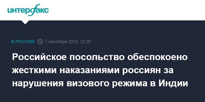 "Посольство обеспокоено ростом числа случаев, когда в отношении российских граждан, нарушивших визовой режим в ходе пребывания в Индии, применяются настолько жесткие меры наказания", - отметил временный поверенный в делах России в Индии Андрей Сорокин.