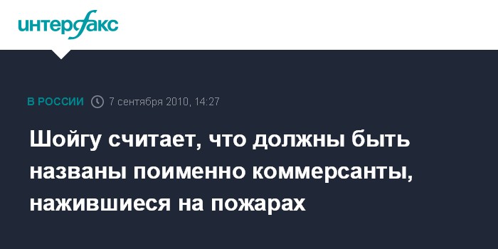 Шойгу считает, что должны быть названы поименно коммерсанты, нажившиеся на пожарах