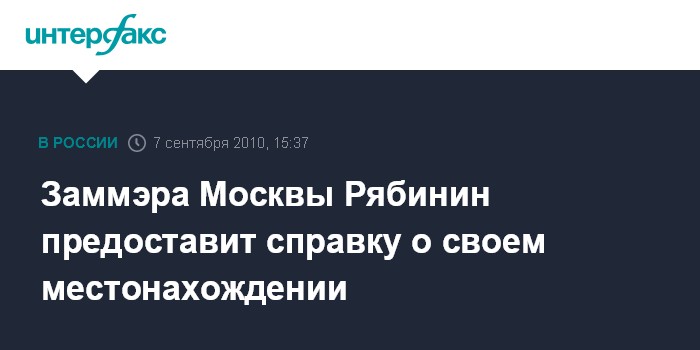 Заммэра Москвы Рябинин предоставит справку о своем местонахождении
