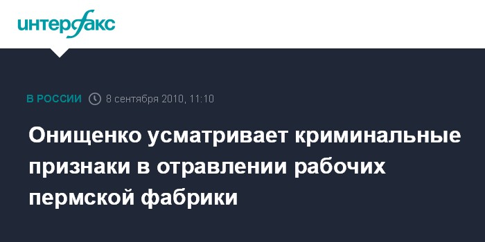 Онищенко усматривает криминальные признаки в отравлении рабочих пермской фабрики