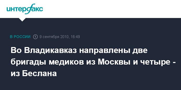 Москва. 9 сентября. INTERFAX.RU - Минздравсоцразвития РФ направляет во Владикавказ две реанимационные бригады медиков.