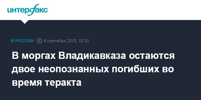 Владикавказ. 9сентября. INTERFAX.RU - Судмедэксперты пока не установили личности двоих погибших во время сегодняшнего теракта у центрального рынка во Владикавказе.