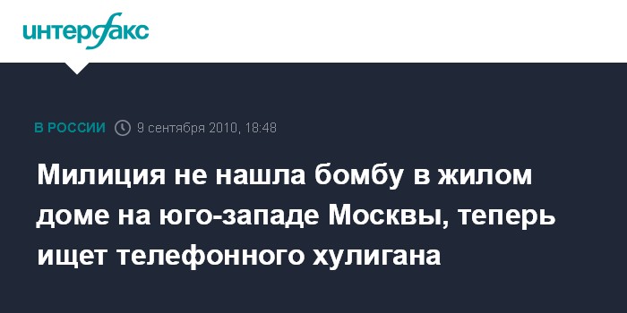 Милиция не нашла бомбу в жилом доме на юго-западе Москвы, теперь ищет телефонного хулигана