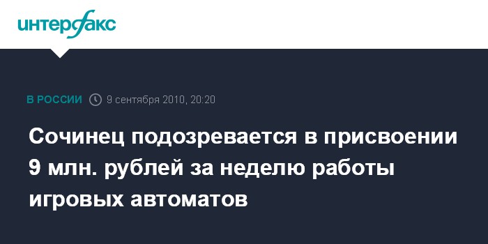 Сочинец подозревается в присвоении 9 млн. рублей за неделю работы игровых автоматов