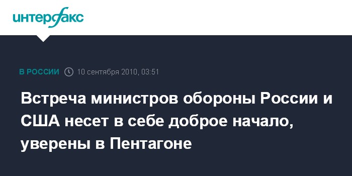 Встреча министров обороны России и США несет в себе доброе начало, уверены в Пентагоне