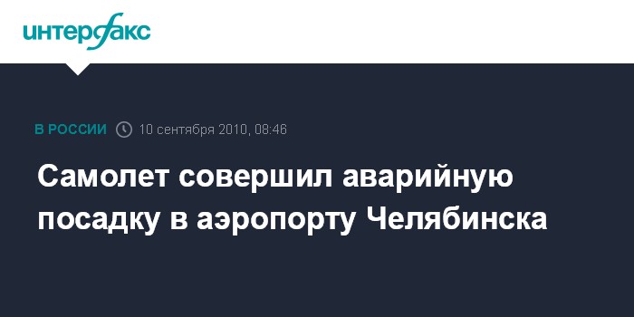 Москва. 10 сентября. INTERFAX.RU - В аэропорту Челябинска вечером в четверг совершил аварийную посадку самолет ЯК-42 авиакомпании "Иж-Авиа", сообщила агентству "Интерфакс-Урал" пресс-секретарь аэропорта Марина Горбунова.