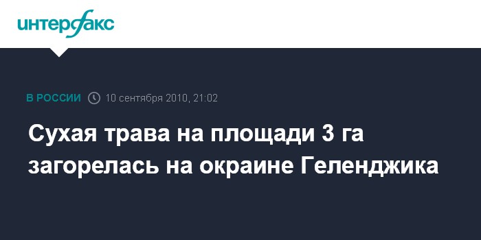 Краснодар. 10 сентября. INTERFAX.RU - В городе Геленджике Краснодарского края горит сухая трава, площадь пожара составляет, по предварительным данным, три гектара.