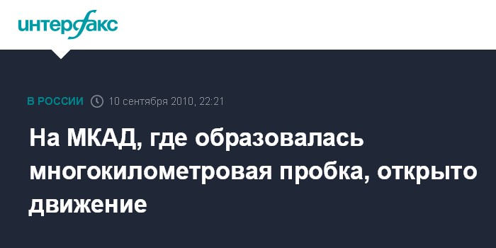 Москва. 10 сентября. ИНТЕРФАКС - Движение по внутренней стороне МКАД, ранее перекрытое сотрудниками ГИБДД в районе 46 км, было открыто в 22:00, передает корреспондент "Интерфакса".
