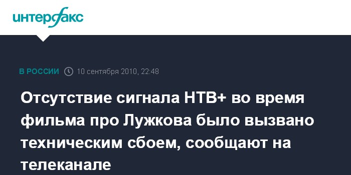 Отсутствие сигнала НТВ+ во время фильма про Лужкова было вызвано техническим сбоем, сообщают на телеканале