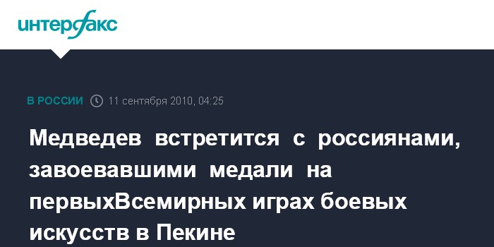 Медведев встретится с россиянами, завоевавшими медали на первыхВсемирных играх боевых искусств в Пекине