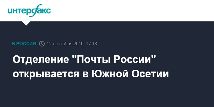 Цхинвали. 12 сентября. INTERFAX.RU - Открытие отделения "Почты России" позволит населению Южной Осетии пользоваться всем спектром почтовых услуг, сообщил "Интерфаксу" председатель госкомитета Георгий Кабисов. "Благодаря подписанному на днях соглашению в Республике Южная Осетия будет открыто отделение "Почты России", которая наряду с местной почтово-телеграфной службой будет оказывать населению весь спектр услуг: доставку подписных изданий, телеграмм и почтовой корреспонденции", - рассказал он.