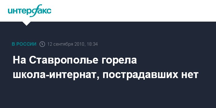 Ставрополь. 12 сентября. INTERFAX.RU - Пожарным удалось примерно в течение получаса ликвидировать пожар в школе-интернате, расположенном в поселке Новотерский Ставропольского края. Информации о пострадавших не поступало. "Сообщение о пожаре поступило в дежурную службу МЧС в 17:45 мск, горела специализированная школа-интернат в поселке Новотерский", - сообщил агентству "Интерфакс-Юг" в воскресенье руководитель пресс-службы ГУ МЧС РФ по Ставропольскому краю Олег Дегтярев. По его словам, в 18:20 мск пожар площадью 5 кв. м был потушен. Из здания интерната было эвакуировано 43 человек.