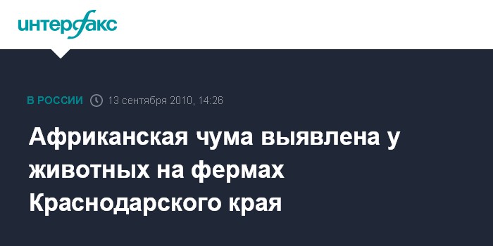 Африканская чума выявлена у животных на фермах Краснодарского края