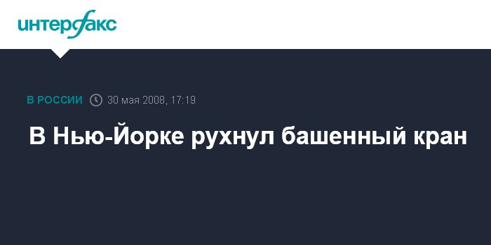 Москва. 30 мая. INTERFAX.RU - В Нью-Йорке на пересечении Восточной 91-й улицы и 1-й авеню упал башенный кран, погребя под собой жилой дом и повердив еще пять зданий. Как сообщает британская телерадиокомпания BBC, при этом пострадали также квартиры в соседнем блочном доме.