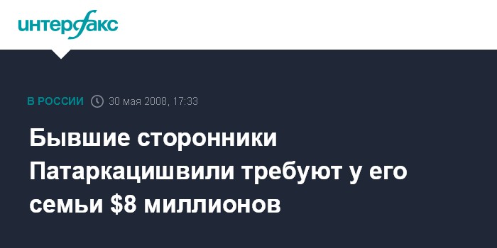 Бывшие сторонники Патаркацишвили требуют у его семьи $8 миллионов