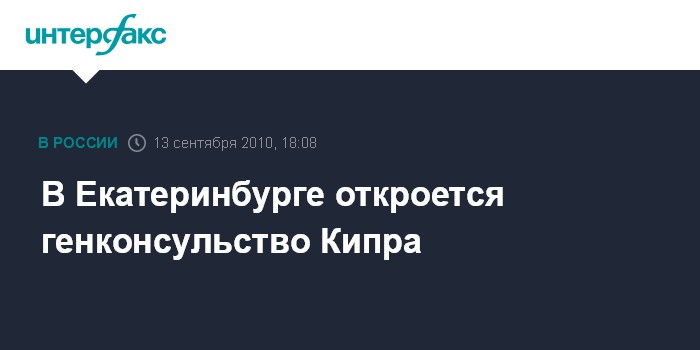 Москва. 13 сентября. INTERFAX.RU - В Екатеринбурге планируется открыть генконсульство Республики Кипр, сообщает департамент информационной политики губернатора Свердловской области.