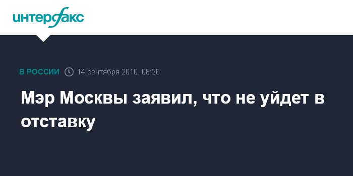 Москва. 14 сентября. INTERFAX.RU - Мэр Москвы Юрий Лужков заявил, что в отставку не уйдет.