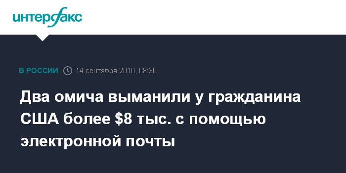 Два омича выманили у гражданина США более $8 тыс. с помощью электронной почты