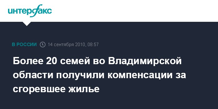 Владимир. 14 сентября. INTERFAX.RU - Во Владимирской области компенсации за жилье и имущество, сгоревшее во время лесных пожаров, получили 22 семьи, сообщила пресс-служба обладминистрации.