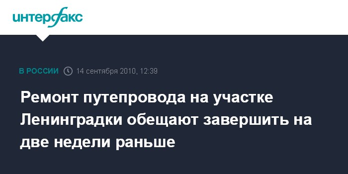 "Движение по путепроводу откроется не 1 ноября 2010 года, как это было запланировано ранее, а на две недели раньше", - сказал собеседник агентства.