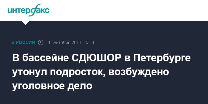 Санкт-Петербург. 14 сентября. INTERFAX.RU - Следственное управление СКП РФ по Петербургу возбудило уголовное дело по факту гибели 16-летнего подростка в одном из бассейнов города, сообщает сайт ведомства во вторник.