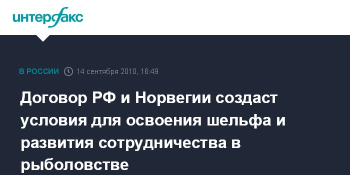 Договор РФ и Норвегии создаст условия для освоения шельфа и развития сотрудничества в рыболовстве