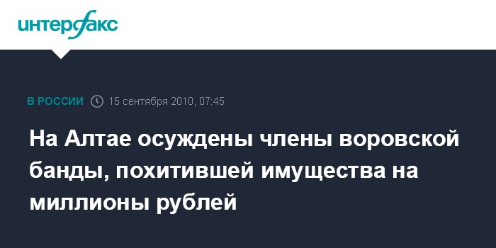 Барнаул. 15 сентября. ИНТЕРФАКС-СИБИРЬ - К длительным срокам лишения свободы приговорены 11 членов банды, которые похищали имущество из коттеджей в Барнауле.