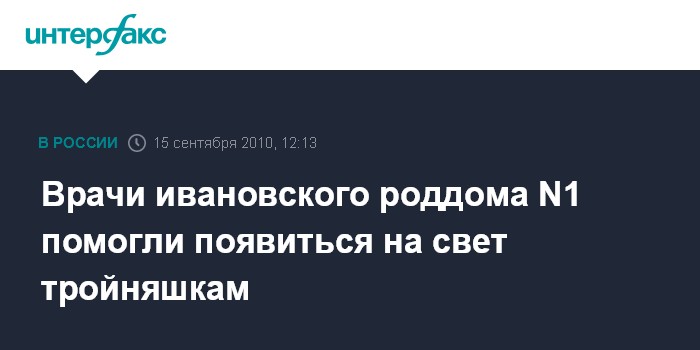 Иваново. 15 сентября. INTERFAX.RU - В Ивановском родильном доме N1 в среду родилась первая за последние 25 лет тройня - два мальчика и девочка.