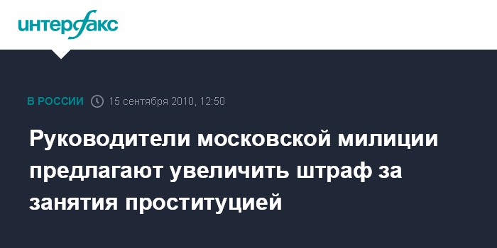 Руководители московской милиции предлагают увеличить штраф за занятия проституцией