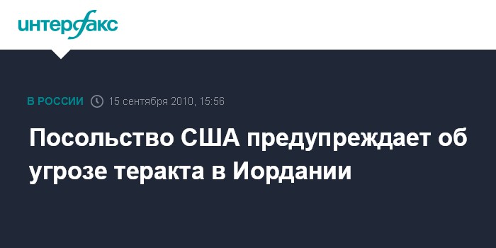 Амман. 15 сентября. INTERFAX.RU - Гражданам США рекомендовано в ближайшие дни воздержаться от посещения иорданского города Акаба по причине угрозы теракта, сообщает в среду посольство США в Иордании.
