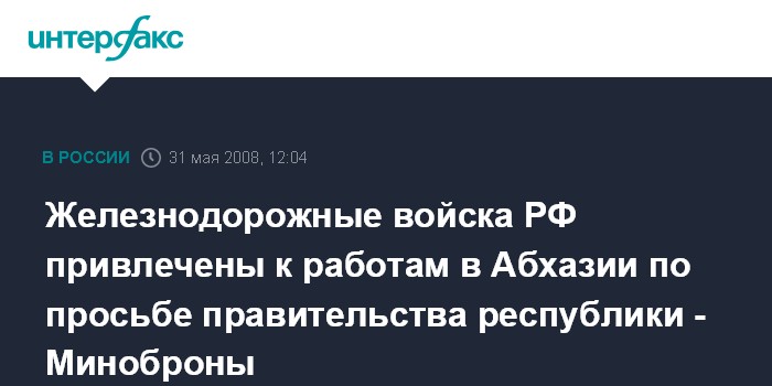 Москва. 31 мая. ИНТЕРФАКС - Министерство обороны РФ подтвердило, что подразделения российских Железнодорожных войск привлечены к восстановлению железной дороги в Абхазии.