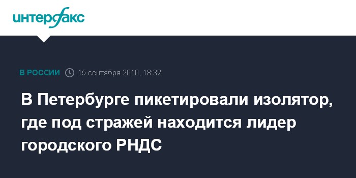 Санкт-Петербург. 15 сентября. INTERFAX.RU - Оппозиционные организации Петербурга в среду пикетировали изолятор временного содержания, где находится арестованный лидер городского отделения РНДС Андрей Пивоваров.