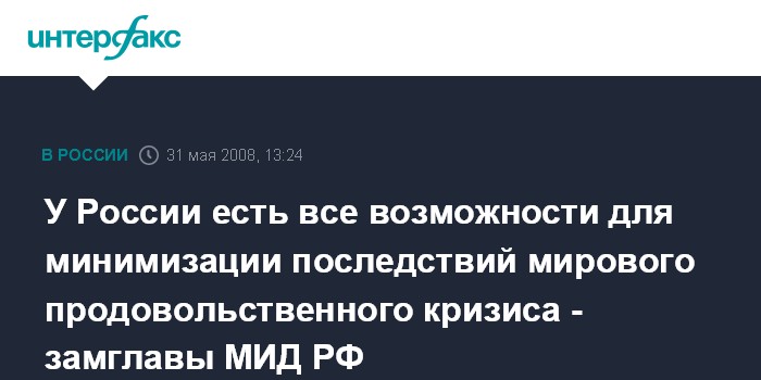 У России есть все возможности для минимизации последствий мирового продовольственного кризиса - замглавы МИД РФ