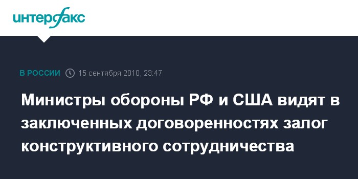 Министры обороны РФ и США видят в заключенных договоренностях залог конструктивного сотрудничества