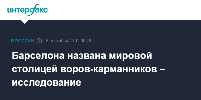 Рим. 16 сентября. INTERFAX.RU - Мировым лидером по количеству краж, совершаемых ворами-карманниками, в 2010 году является испанский город Барселона, сообщает в среду итальянская газета Corriere della Sera, приводящая результаты проведенного в Интернете исследования.