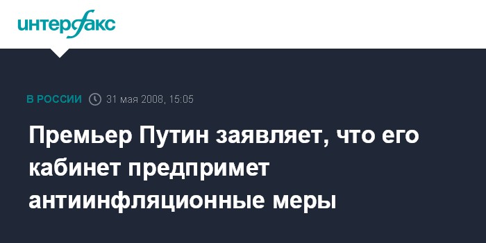 Премьер Путин заявляет, что его кабинет предпримет антиинфляционные меры