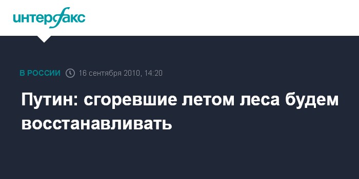 Москва. 16 сентября. INTERFAX.RU - Глава правительства РФ Владимир Путин поставил задачу решить проблемы восстановления лесов, сгоревших в результате летних пожаров.