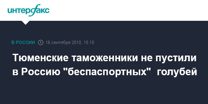 Тюмень. 16 сентября. INTERFAX.RU - Сотрудники таможенного поста в аэропорту Тюмени задержали домашних голубей, привезенных из Армении, сообщила "Интерфаксу" пресс-секретарь Тюменской таможни Лариса Минаева в четверг.