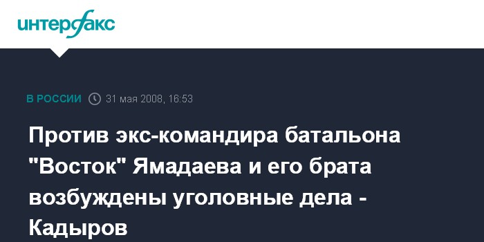 "Правоохранительными органами возбуждены и расследуются уголовные дела в отношении братьев Ямадаевых, которые подозреваются в причастности к похищению и убийстве людей", - сказал Р.Кадыров в субботу на совещании с членами правительства и главами администрации районов республики.
