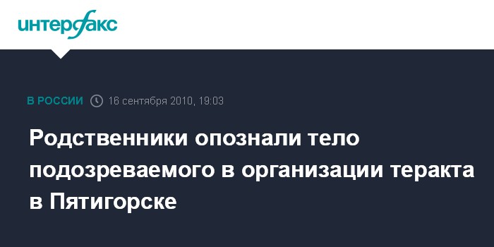 Родственники опознали тело подозреваемого в организации теракта в Пятигорске