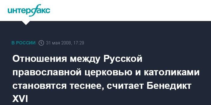 Отношения между Русской православной церковью и католиками становятся теснее, считает Бенедикт XVI