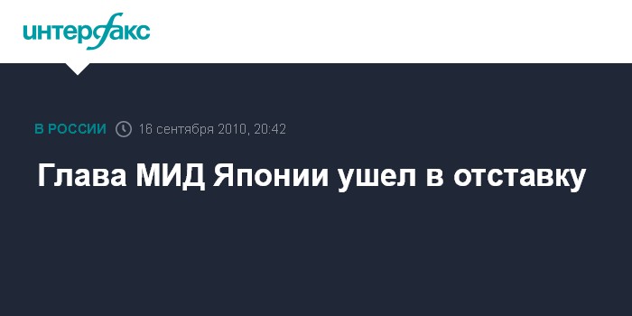 Вашингтон. 16 сентября. INTERFAX.RU - Министр иностранных дел Японии Кацуя Окада объявил об уходе в отставку в связи с решением занять пост генерального секретаря правящей Демократической партии Японии, сообщает в четверг американская газета "Уолл-стрит джорнэл".