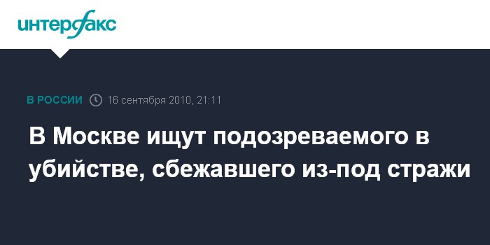 Москва. 16 сентября. INTERFAX.RU - Подозреваемый в убийстве сбежал из-под стражи вечером в четверг в Москве, сообщил "Интерфаксу" источник в правоохранительных органах.