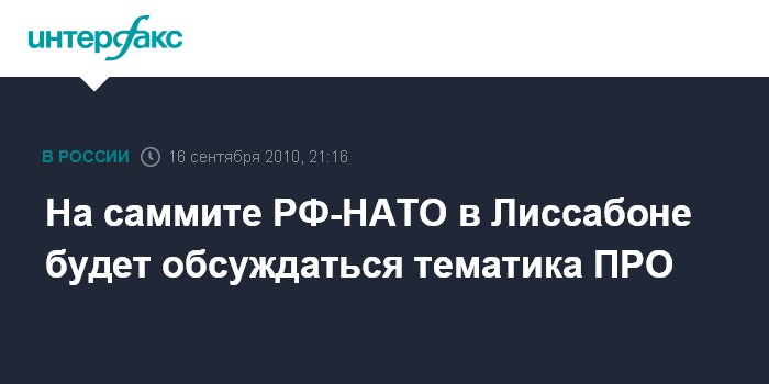 На саммите РФ-НАТО в Лиссабоне будет обсуждаться тематика ПРО