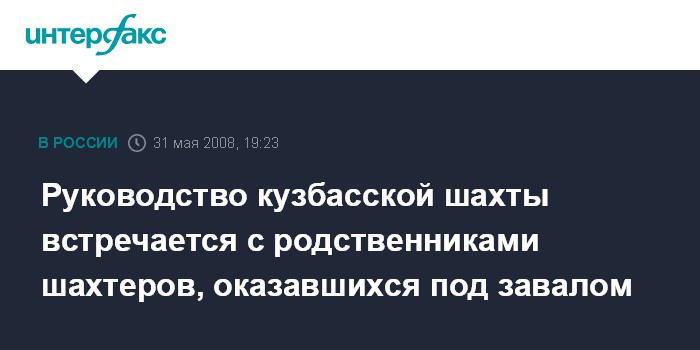 Кемерово. 31 мая. ИНТЕРФАКС-СИБИРЬ - В городе Междуреченске, где 30 мая произошло обрушение свода шахты, ее руководство каждые четыре часа проводит встречи, с родственниками горняков, остающихся под завалом.