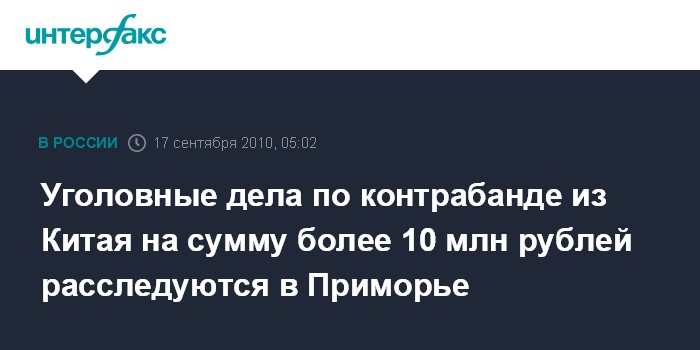 Владивосток. 17 сентября. ИНТЕРФАКС - ДАЛЬНИЙ ВОСТОК - Отдел внутренних дел по городу Находке (Приморский край) возбудил уголовное дело по факту контрабанды товаров широкого потребления из Китая, оформленных под стройматериалы, на общую сумму свыше 10 млн рублей.