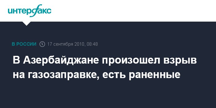 Ленкорань. 17 сентября. INTERFAX.RU - В Ленкоранском районе на юге Азербайджана на магистральной дороге Алят-Астара в районе 05.30 утра произошел взрыв на газозаправке, сообщает региональное бюро агентства "Интерфакс" в пятницу.