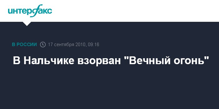 Нальчик. 17 сентября. INTERFAX.RU - В столице Кабардино-Балкарии Нальчике минувшей ночью неизвестные подорвали мемориал "Вечный огонь славы" в городском парке.