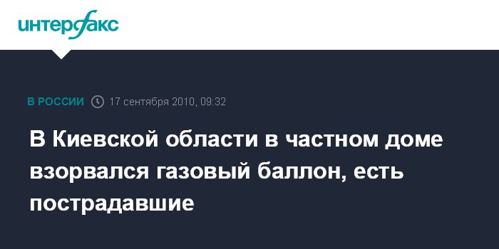 Киев. 17 сентября. INTERFAX.RU - В с. Саварка Богуславского района Киевской области в четверг утром на территории частного домовладения в хозяйственном здании произошел взрыв бытового газового баллона с последующим горением.