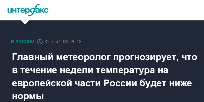 Главный метеоролог прогнозирует, что в течение недели температура на европейской части России будет ниже нормы